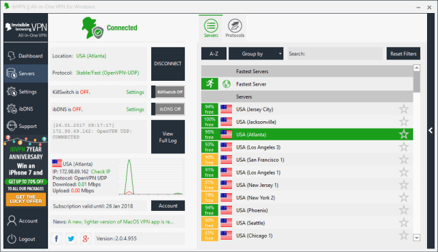 根据您选择的帐户,支持的协议包括 Open加速器、PPTP 和 L2TP。